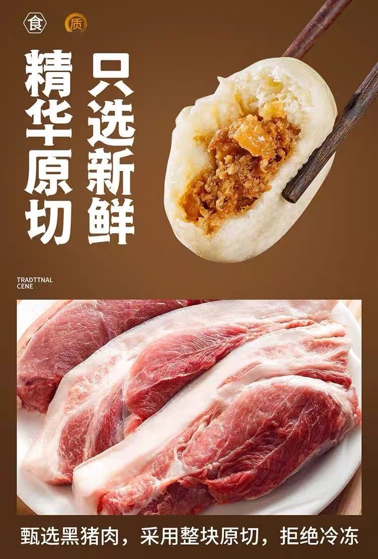 正宗嵊州黑猪肉小笼包儿童早餐老面鲜肉包冷冻速食半成品手工包子